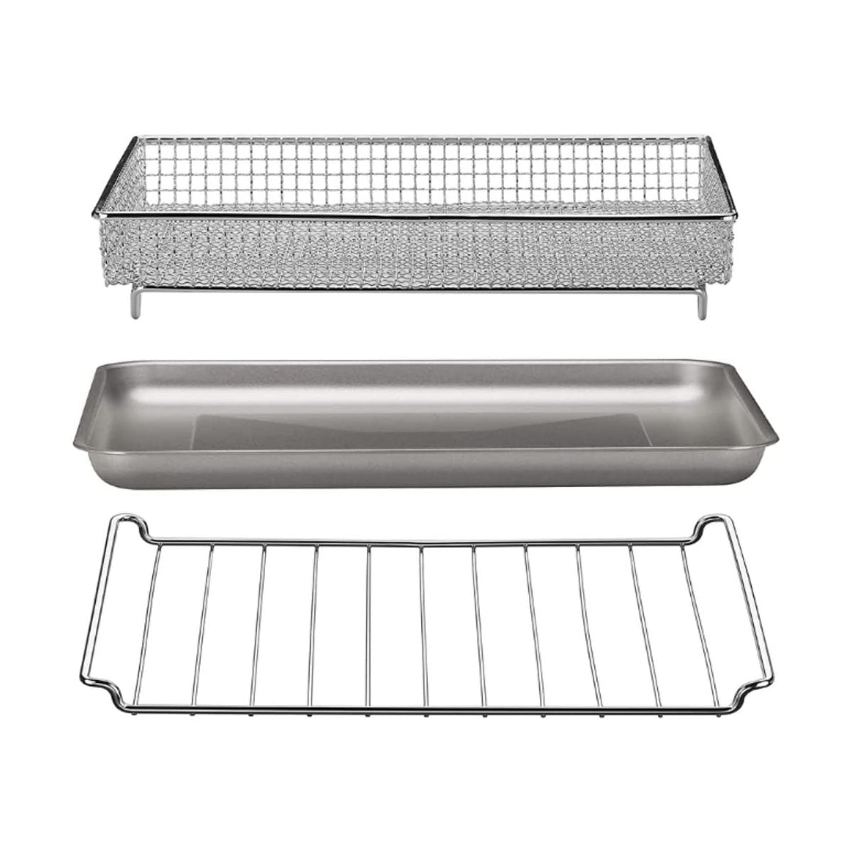 - Includes: Oven Rack, Baking Pan, Air Fryer Basket